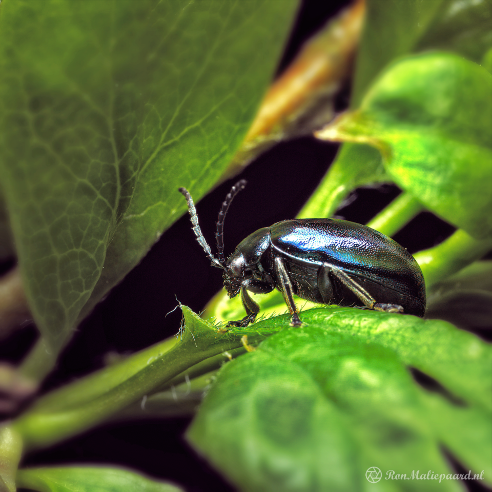 Een vrouwelijk Elzenhaantje (Agelastica alni) met een hele dikke buik, vol met eitjes. Kan me niet voorstellen dat ze zich lekker voelt zo… Ze kan wel tot 900 oranje eitjes leggen! Daarna gaat ze dood.