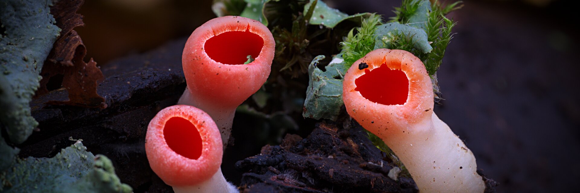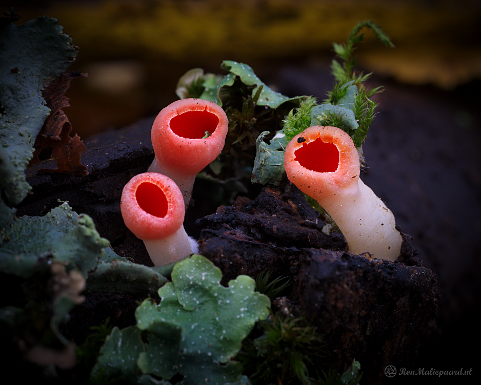 Rode kelkzwam (Sarcoscypha coccinea) bekerzwam of vermiljoenbekerzwam of krulhaarkelkzwam (Sarcoscypha austriaca)