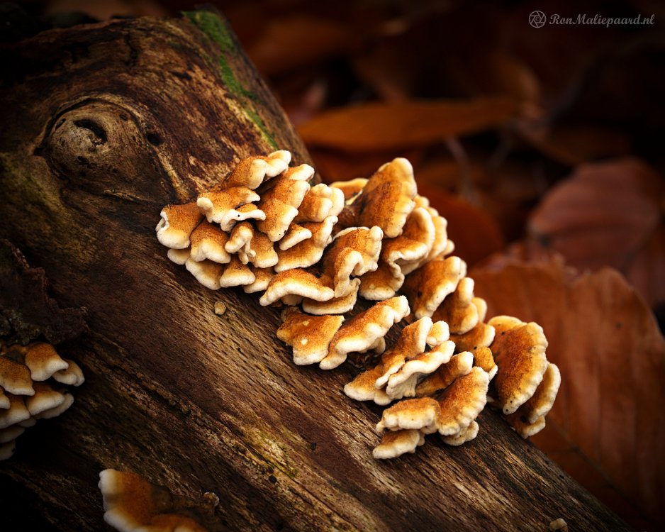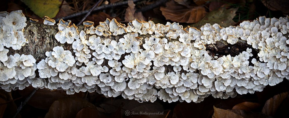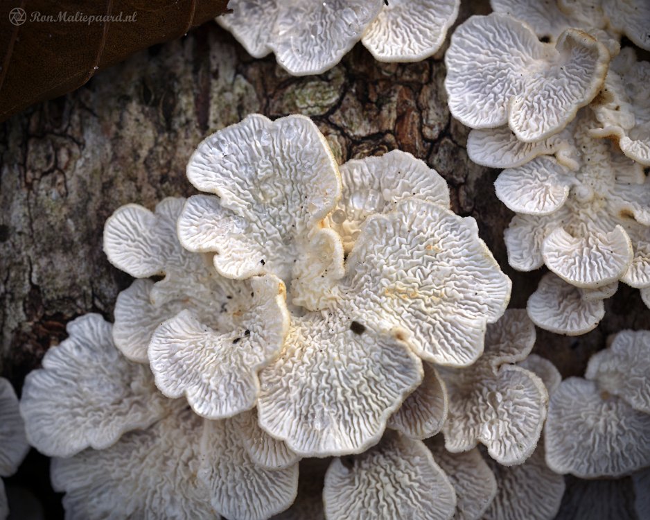 Plooivlieswaaiertje (Plicaturopsis crispa) onderzijde